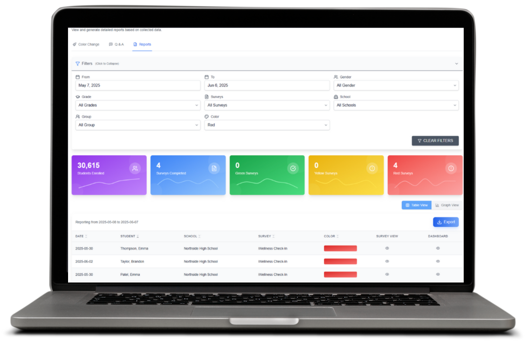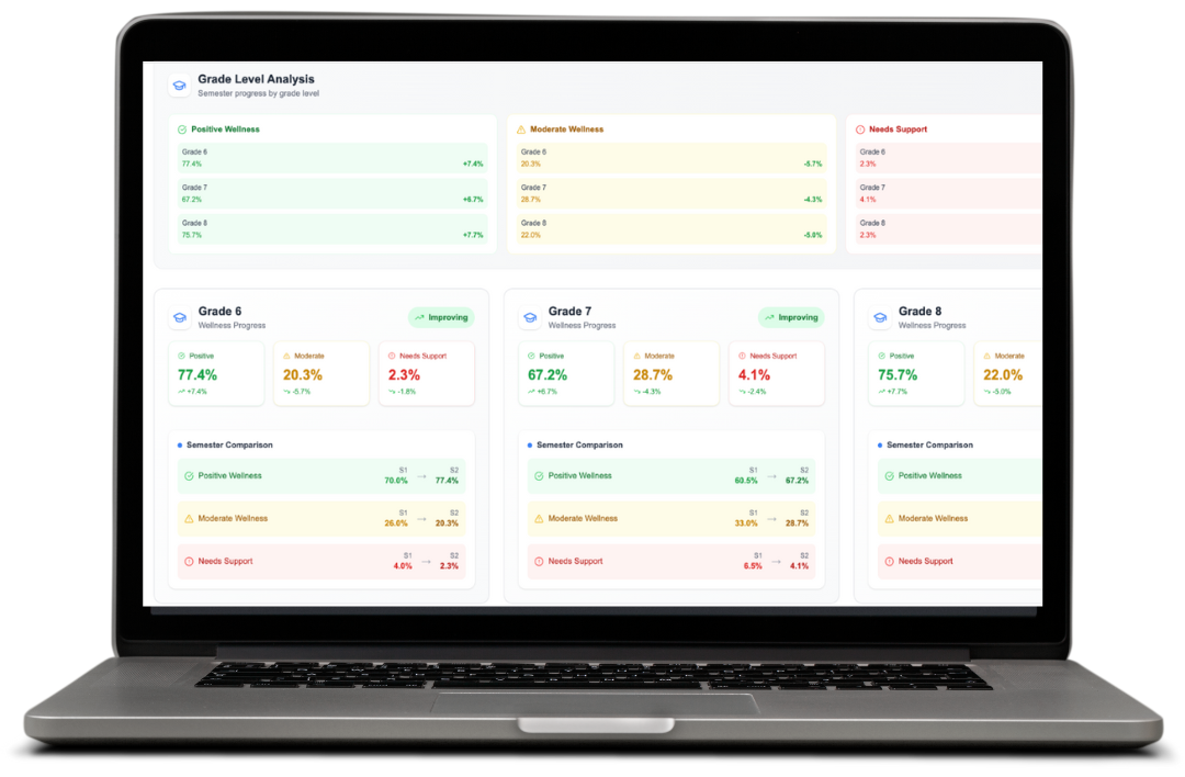 Instant access to student wellness data, giving educators the tools to make informed, timely decisions.